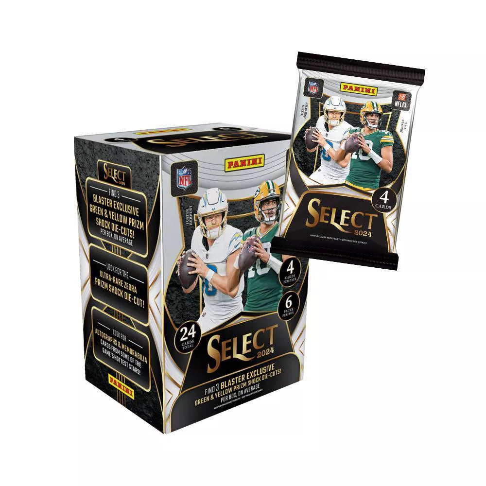 Panini presents the 2024 NFL Select Football Trading Card Blaster Box. Each box contains 6 packs with 4 cards per pack. Look for Blaster Exclusive Green and Yellow Prizm Shock Die-Cuts! Look for the Ultra-Rare Zebra Prizm Shock-Die Cut! Look for Autographs and Memorabilia cards from some of the Game's Hottest Stars! Collect them all! Content may vary.