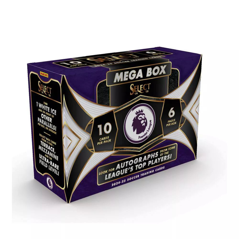 Panini presents the 2024-25 Select Premier League Soccer Trading Card Mega Box. Each box contains 6 packs with 10 cards per pack. Look for Autographs from some of the League's Top Players. Look for White Ice and an Array of Other Parallels! Collect Base Cards from 3 Tiers- Terrace, Mezzanine and the Ultra-Rare Field Level! Content may vary.