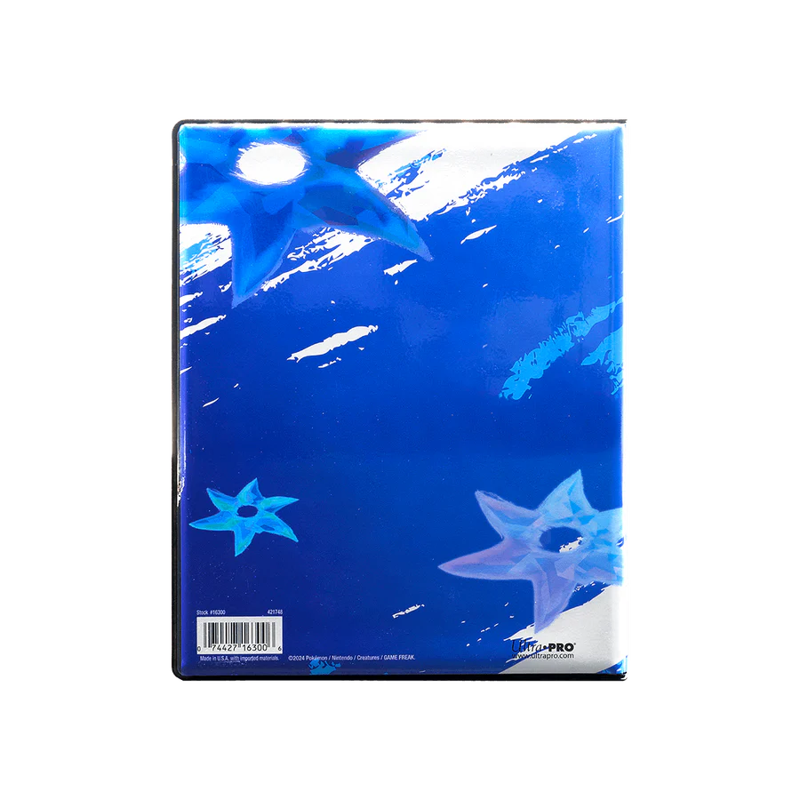 4-Pocket Portfolios for Pokémon feature a vibrant, full-art cover of Greninja. Each portfolio stores and protects up to 40 standard size cards single-loaded and 80 cards double-loaded in archival-safe polypropylene pages. There are also pages in the center of the portfolio to store up to 4 oversized Pokémon cards. Made in California, U.S.A.