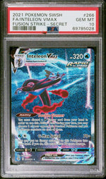 2021 POKEMON SWORD & SHIELD FUSION STRIKE #266 FA/INTELEON VMAX FUSION STRIKE-SECRET PSA#10