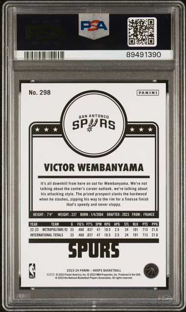 2023 PANINI NBA HOOPS #298 VICTOR WEMBANYAMA PSA#10